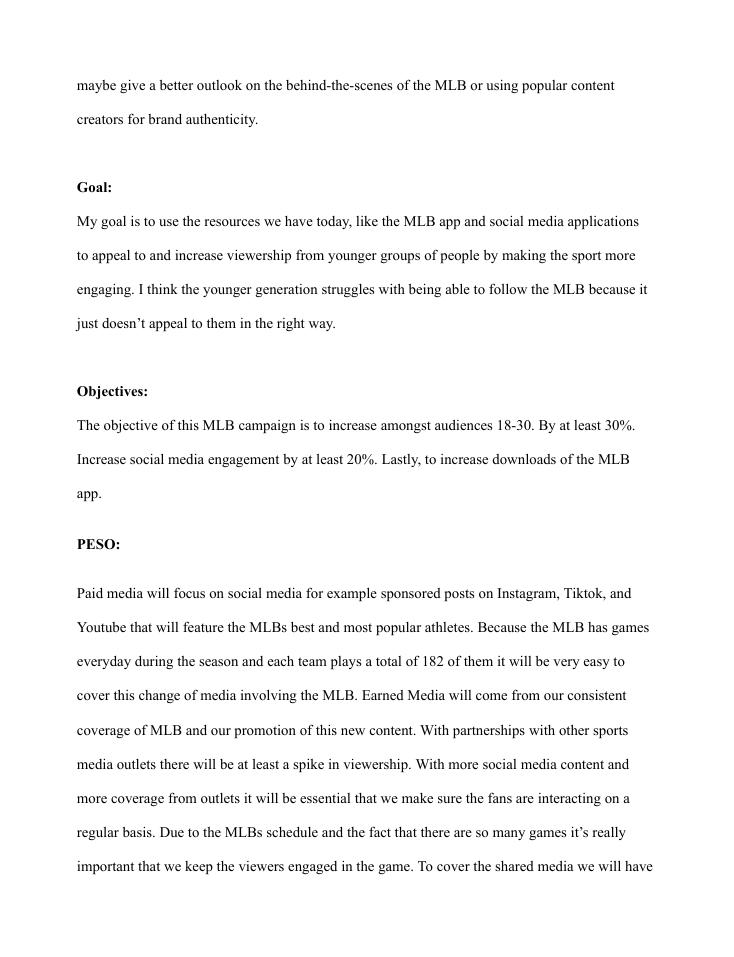 An assignment where I discussed possible ways to increase viewership for the MLB and a press release discussing it.